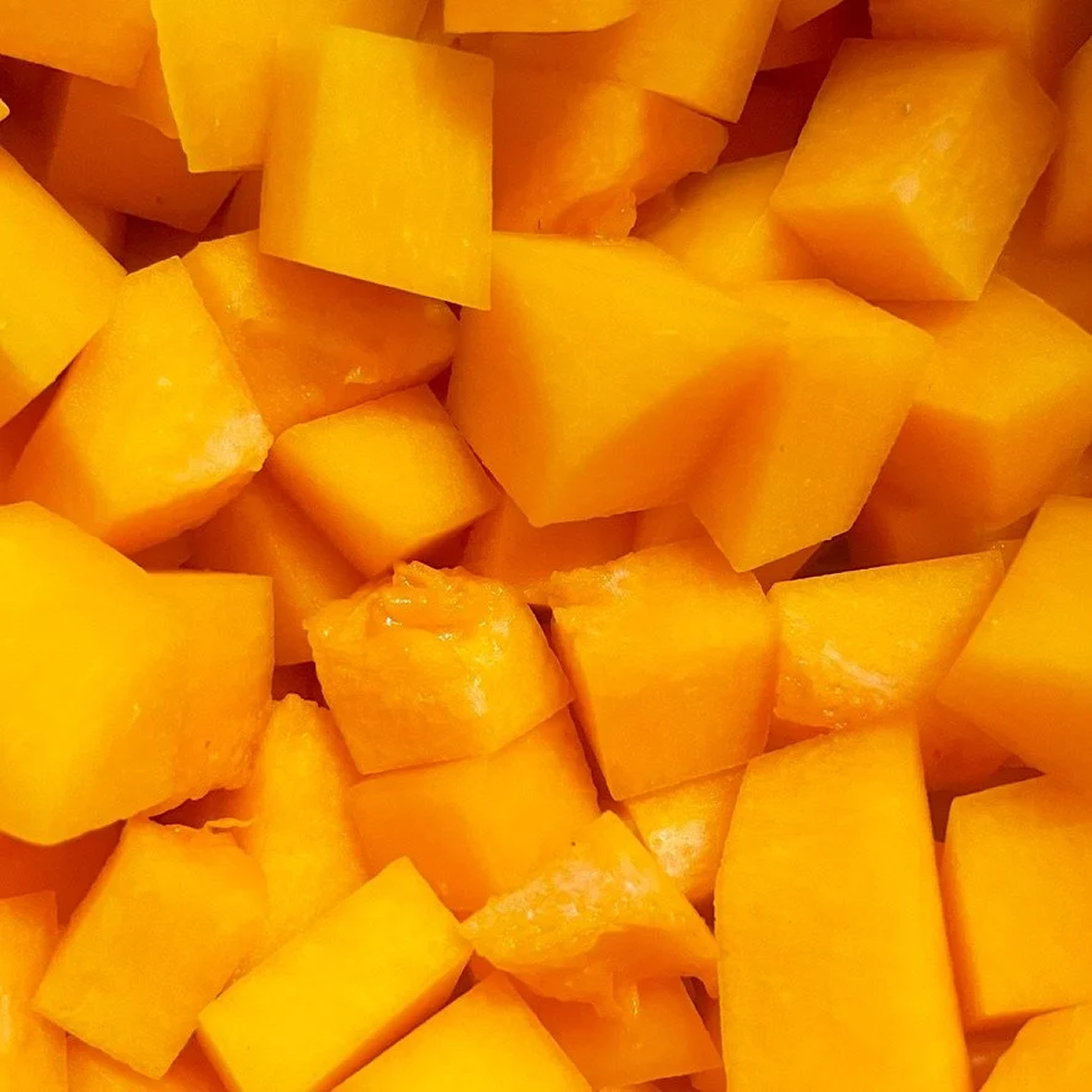 Cubos de mango Kent y Ataulfo madurados en árbol, cortados y congelados individualmente para ofrecer pulpa dulce y textura firme, lista para mezclar sin desperdicio.